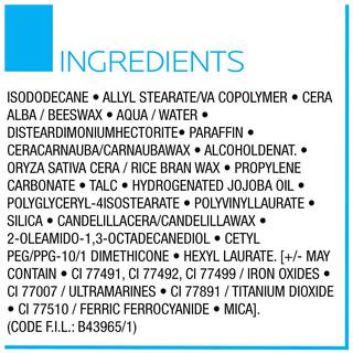 AQUA / WATER • PARAFFIN • COPERNICIA CERIFERA CERA/CARNAUBA WAX • CERA ALBA/BEESWAX • STEARETH-20 • ACACIA SENEGAL/ACACIA SENEGAL GUM • BUTYLENE GLYCOL • ALCOHOL DENAT • GLYCERIN • STEARETH-2 • CETYL ALCOHOL • POTASSIUM CETYL PHOSPHATE • HYDROXYETHYLCELLULOSE • SODIUM DEHYDROACETATE • SODIUM POLYMETHACRYLATE • SODIUM CHLORIDE • SODIUM BICARBONATE • SODIUM HYALURONATE • PHENETHYL ALCOHO • PEG/PPG-17/18 DIMETHICONE • POLOXAMER 188 • POLYQUATERNIUM-10 • SILICA • PENTYLENE GLYCOL • PROPYLENE GLYCOL • 2-OLEAMIDO-1 • 3-OCTADECANEDIOL • CAPRYLYL GLYCOL • DISODIUM EDTA • POTASSIUM PHOSPHATE • POTASSIUM CHLORIDE • CI 77491 • CI 77499 / IRON OXIDES • CI 77491 • CI 77492 • CI 77499 / IRON OXIDES • CI 77007 / ULTRAMARINES • CI 77891 / TITANIUM DIOXIDE • CI 77510 / FERRIC FERROCYANIDE • MICA